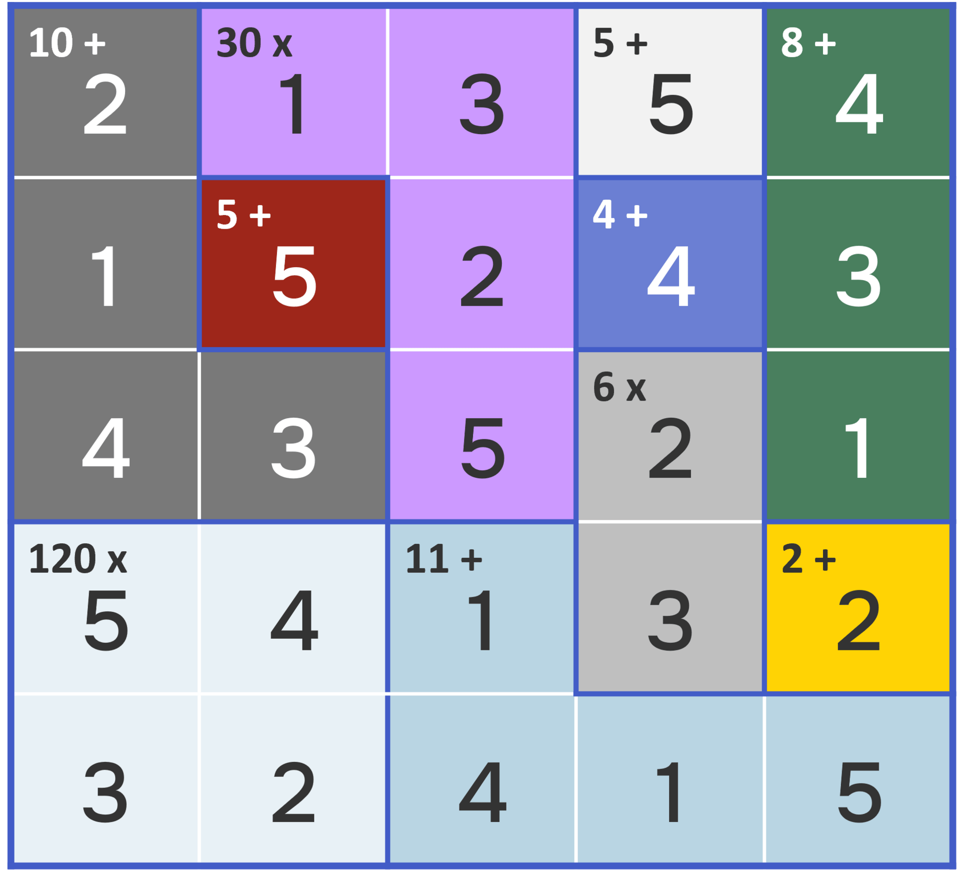 The objective is to fill in the grid with the correct digit in each cell, between 1 and 5: