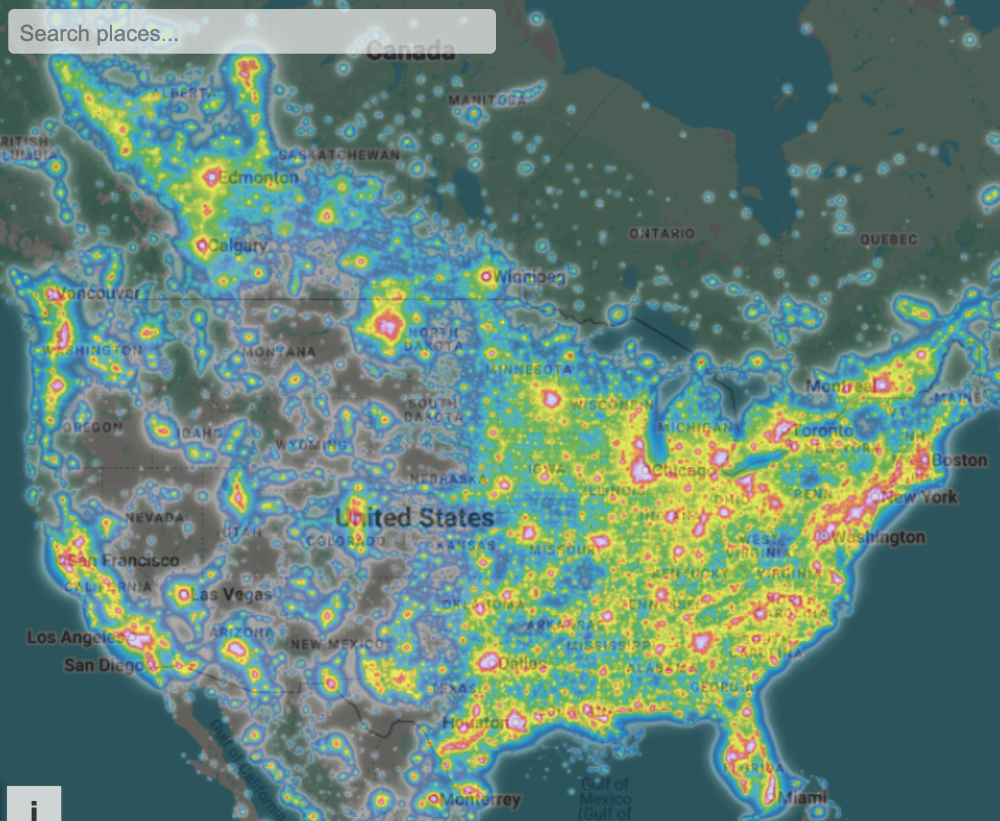 It’s pretty obvious from the map that if you want to really see the stars, then Oregon is a good place to start (light pollution in yellow and red).